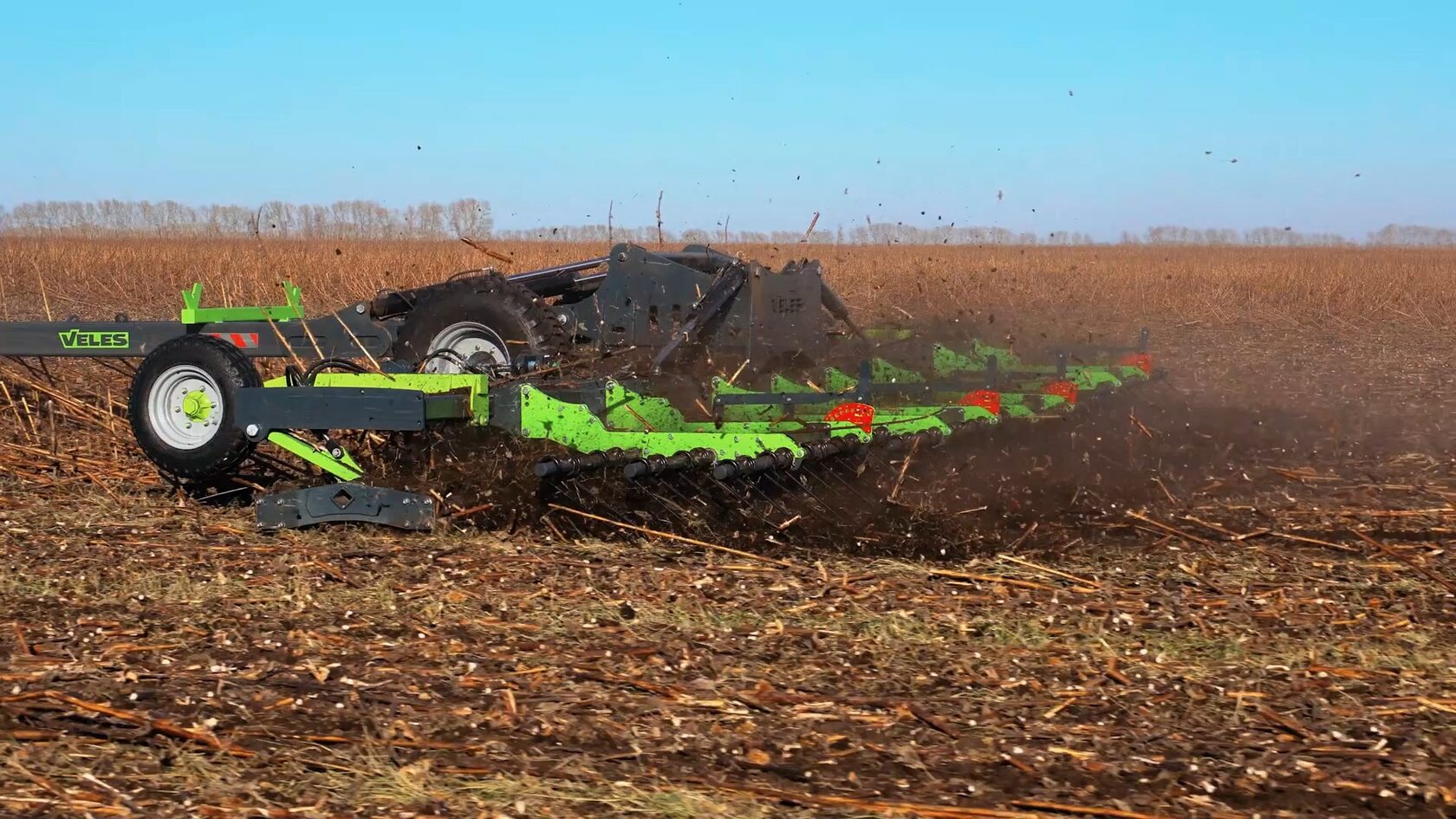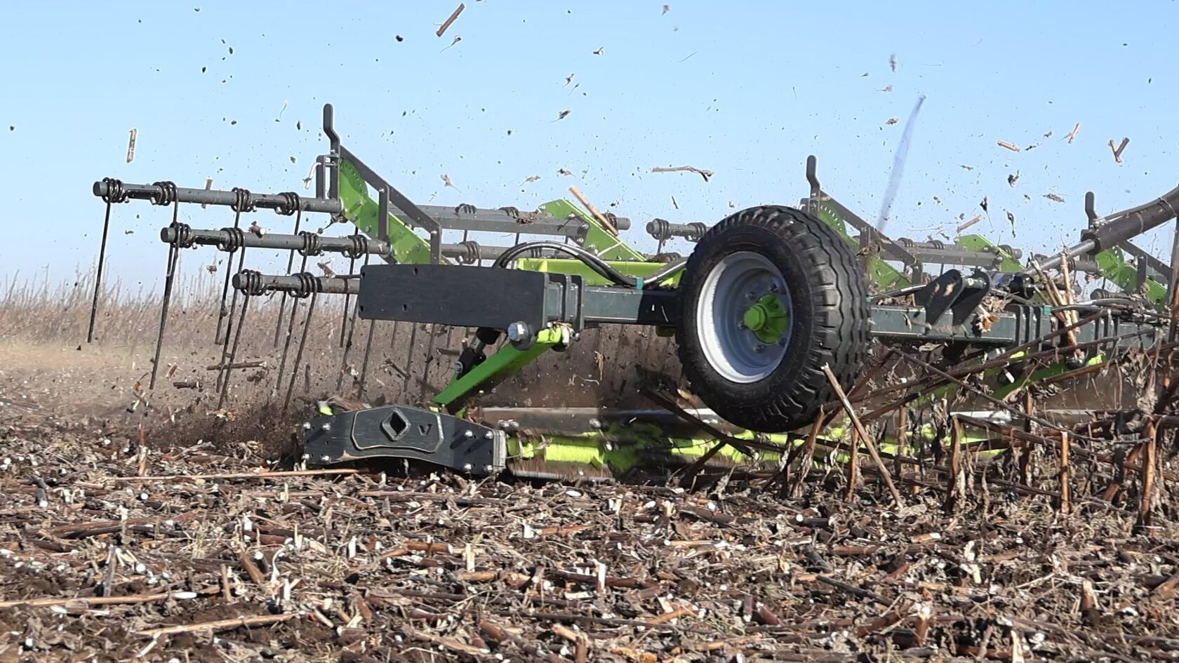 - Если мы работаем после уборки, то ножевые катки мульчируют растительную массу, а пружинные зубья равномерно ее распределяют, создавая условия для исключения зон неоднородностей в плане возврата питательных элементов в почву.