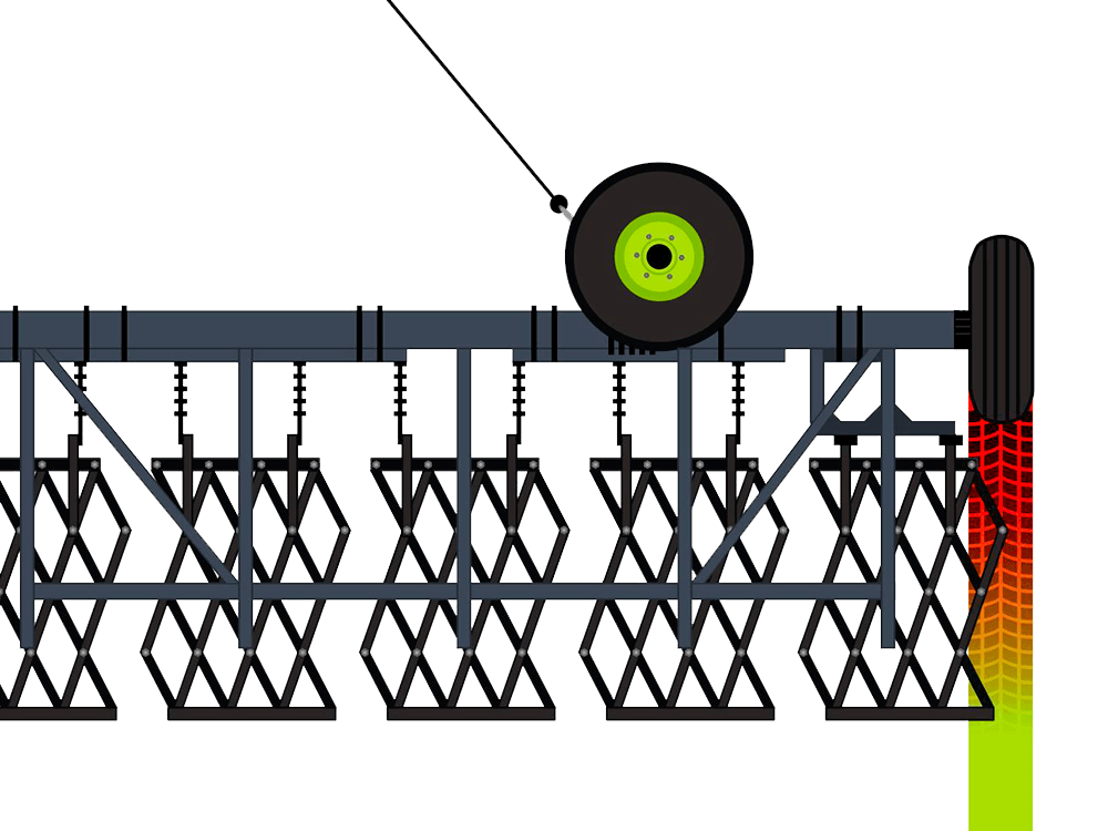 Благодаря перекрытию колесного следа рабочими органами, расположенными в шахматном порядке, на поле не остаётся необработанных участков, которые могли бы создать проблемы на предпосевном этапе, и, как следствие, повлиять на равномерность всходов.