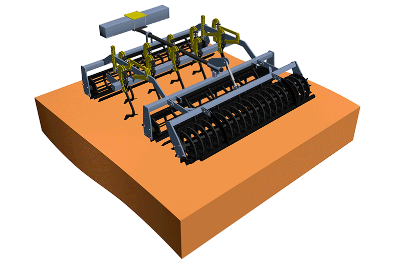 Each section individually follows the field terrain, which is especially important when the soil is cultivated at shallow depths.