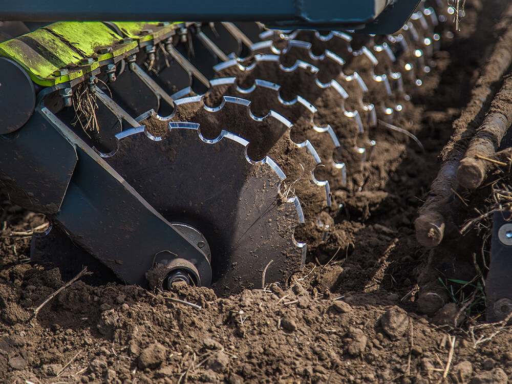 The smaller the disc, the higher its rotation speed and the more it shreds the crop residues, forming a mulch layer up to 3 cm deep that reduces the effects of wind and water erosion, prevents moisture evaporation and improves moisture penetration into the soil