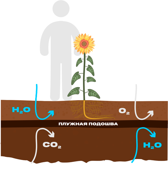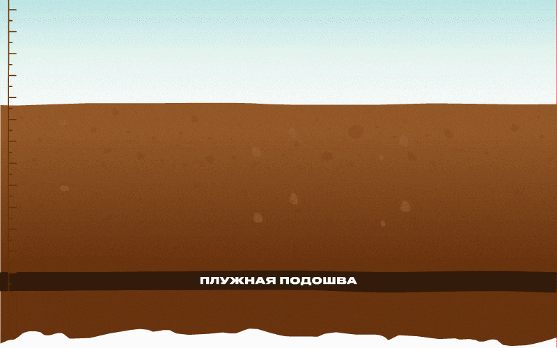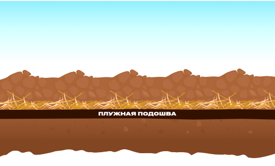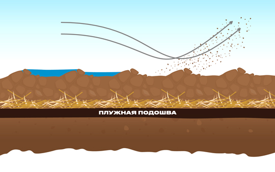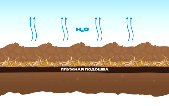 • Формирование плужной подошвы приводит к невозможности накопления влаги ниже пахотного горизонта;
